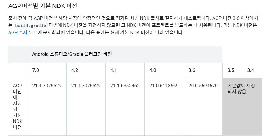 Gradle Version에 따라 저정된 NDK가 사용되어야 할 것 같지만