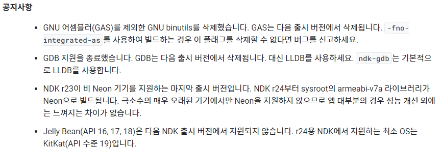 [NDK] r23 LTS 이후 r24 notice 본문